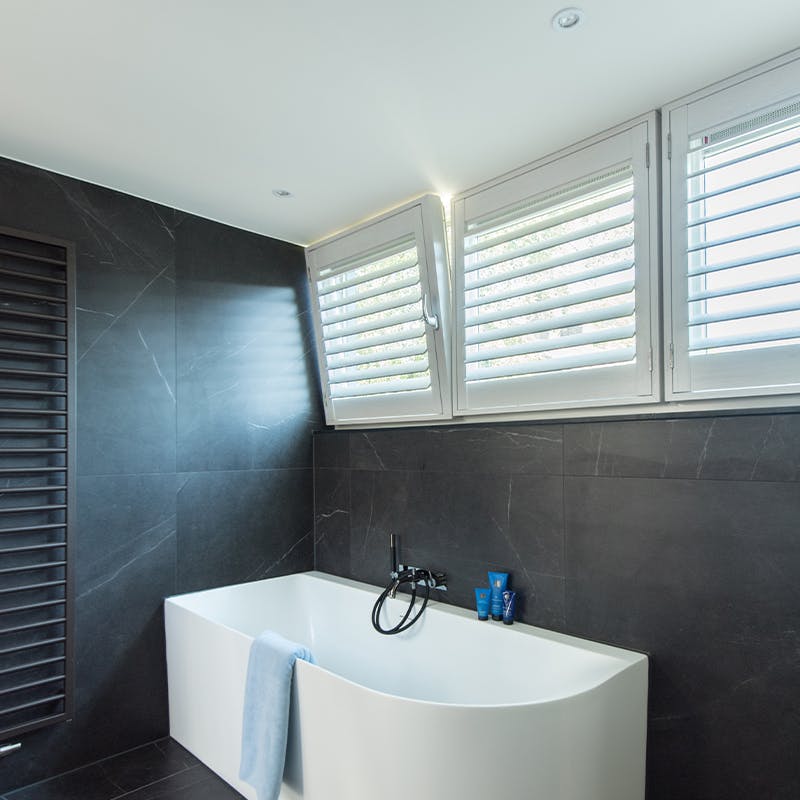 + Vochtig of niet, elke ruimte is gebaat met aluminium shutters.