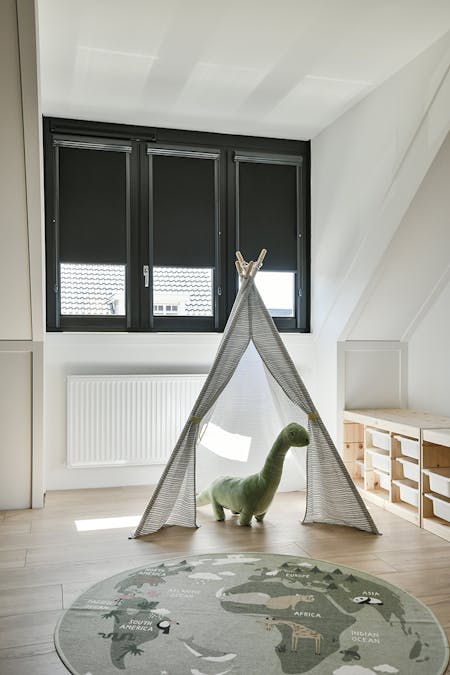 Een bijkomende interieurtip? Wanneer je de systeemkleur in dezelfde kleur neemt als het raamwerk, vormt dit alles één mooi esthetisch geheel!