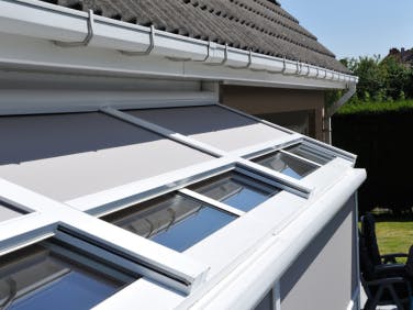 Verandazonweringen bestaan in evenveel vormen en kleuren als er verschillende soorten veranda’s zijn. Bij Brustor vind je naast de standaardmaten ook zonneweringen voor veranda’s en serres met een unieke vorm. Met een uitschuifbaar verlengstuk kan je bovendien vooraan extra schaduw creëren. Deze zonwering en topscreen plaatsen we op het dak van de terrasuitbreiding. Daardoor verandert jouw veranda niet in een sauna op warme zomerdagen, maar blijft het heerlijk van temperatuur.