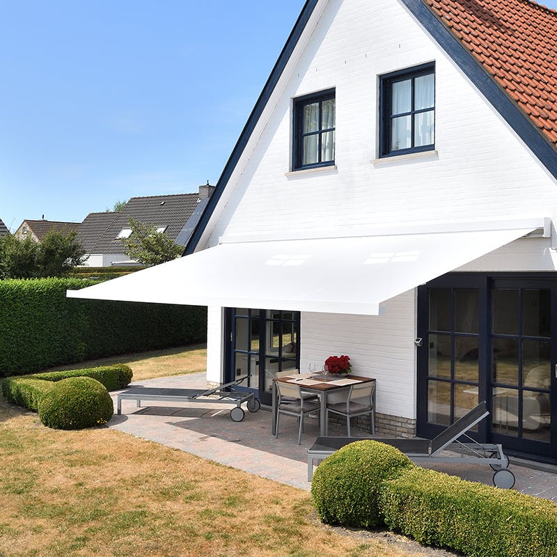 Je kan heel wat opties toevoegen aan de knikarmschermen van Brustor. Denk maar aan verwarming, ledverlichting en volants (verticale flap aan het uiteinde van het scherm). Uniek aan deze schermen zijn de verschillende soorten armen: Standaard, Elite en Prestige. Ze hebben elk een verschillende stevigheid en windresistentie. Zo is er voor elk terras een gepast zonnescherm.