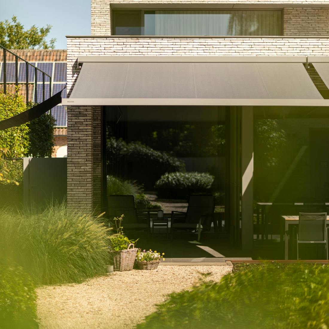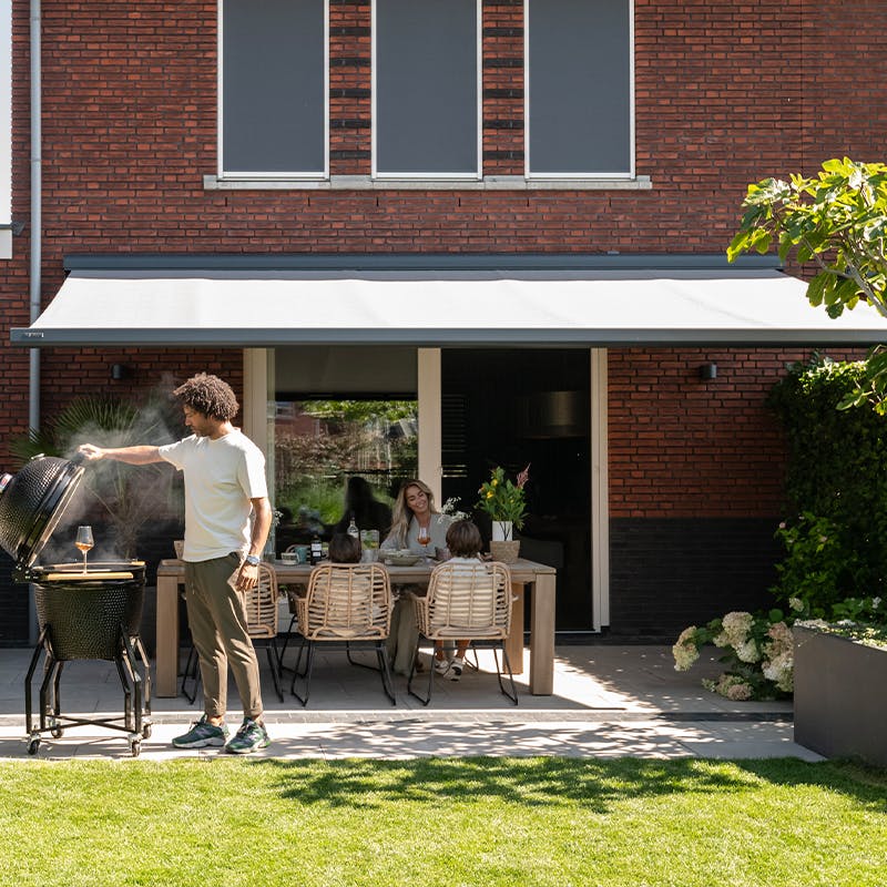 Wil je genieten van schaduw in jouw tuinkamer? Dan is een zonnescherm de ideale oplossing. Brustor levert knikarmschermen met een elektrisch gestuurde motor. Zo kan je vanuit je luie stoel het scherm bedienen met een afstandsbediening of via je smartphone.