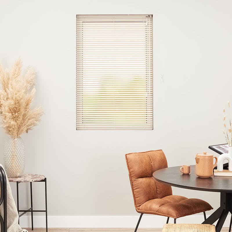 We laten je heel graag kiezen tussen houten of aluminium lamellen. Die aluminium variant kan je in deze drie lamelbreedtes bestellen: 16mm, 25mm of 50mm. De twee kleinste maten zijn ideaal voor de kleine ramen, deuren of draai-kiepramen in je woning. De lamel van 50mm is dan weer de maat die bij ons het meest gekozen wordt, en dan vooral voor middelgrote en grote ramen. Behalve de talloze kleuren waarin onze lamellen komen, bieden we je de optie om te opteren voor glanzende tot zeer matte tinten. Zo stel je in geen tijd de raamdecoratie helemaal naar jouw wensen samen!