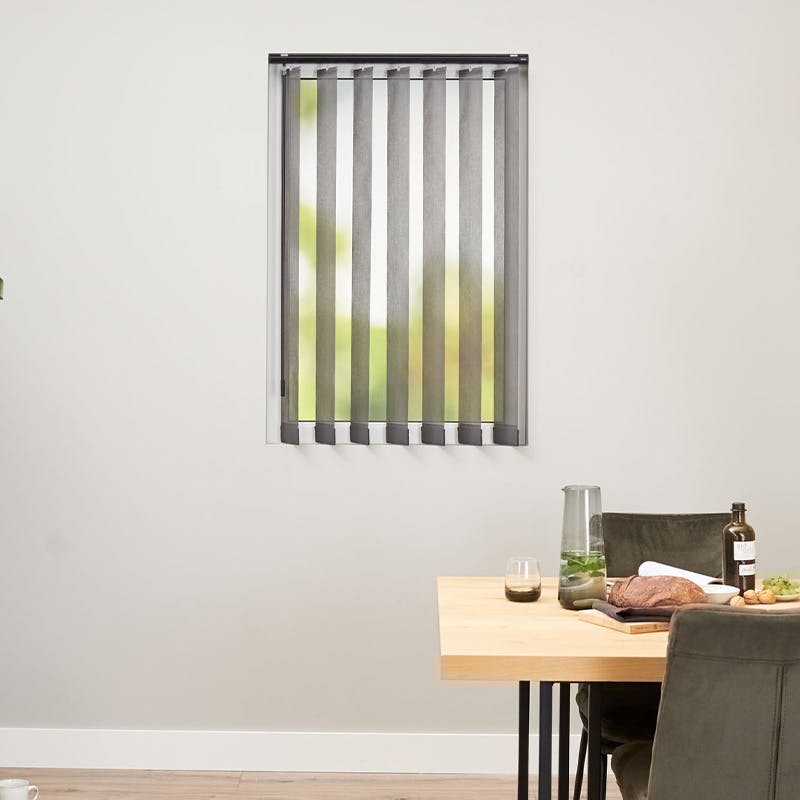 inhuis plaza biedt deze verticale lamellen aan in stof, kunststof of aluminium. Ze zijn beschikbaar in deze lamelbreedtes: 52mm, 70mm, 89mm en 127mm.